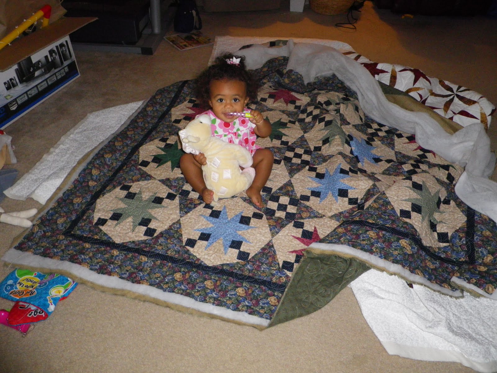 It will be a while for this one. We weren't happy with our quilting job so I am taking it all out. One disaster out of our week wasn't so bad. We are still learning.